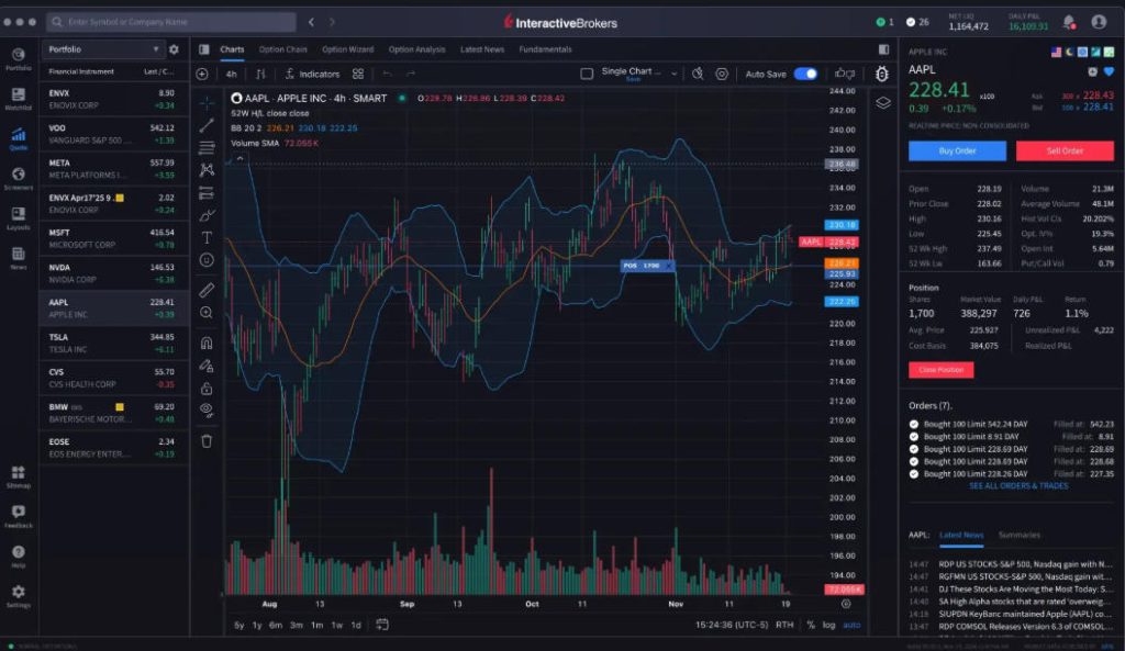 IBKR Desktop is a powerful, streamlined, user-friendly trading platform that helps traders achieve precision and control over their trading strategies. The platform offers highly customizable layouts with a broad array of tools for technical and fundamental analysis, sophisticated charting capabilities and advanced order types, including Level 2 market depth.