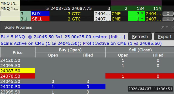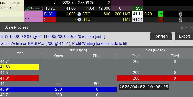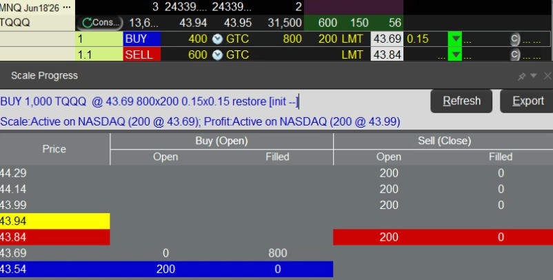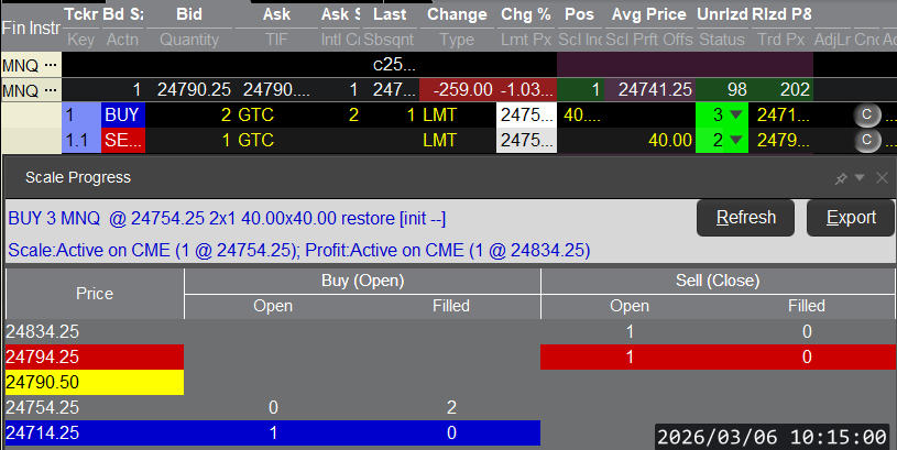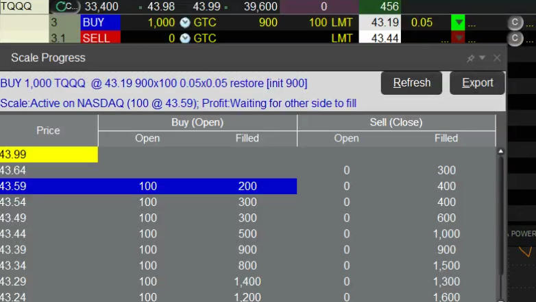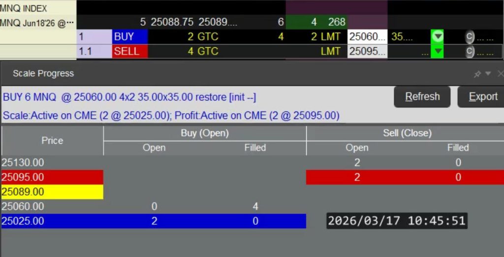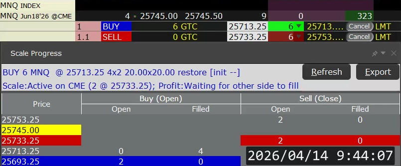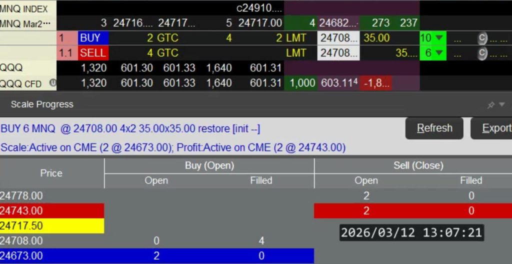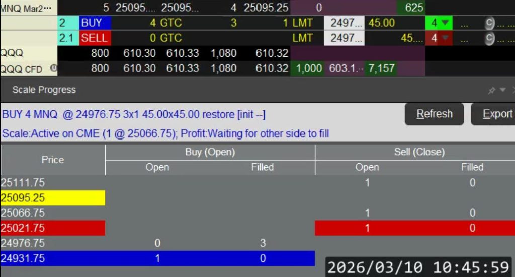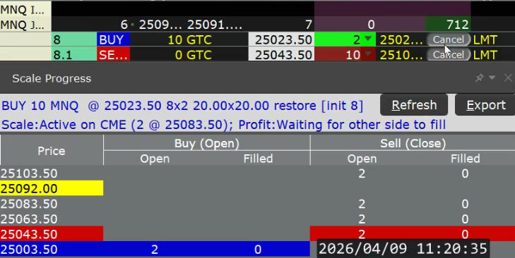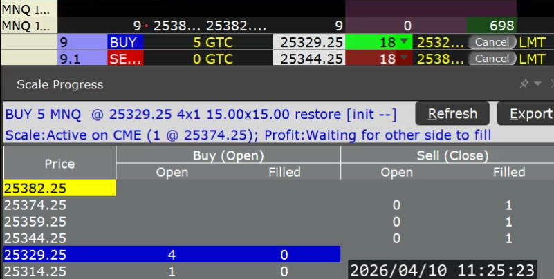 We use Interactive Brokers (IB) ScaleTrader to trade the e-Micro Nasdaq futures.