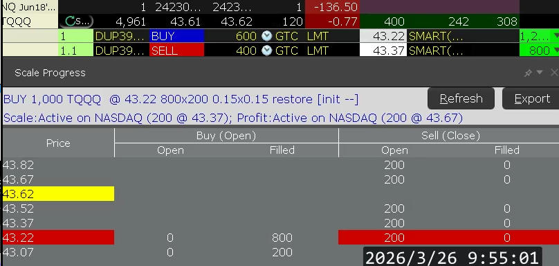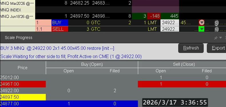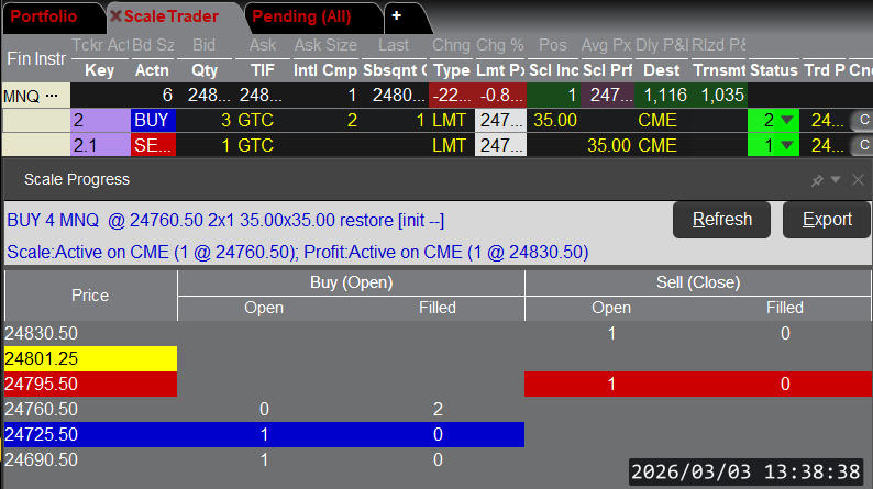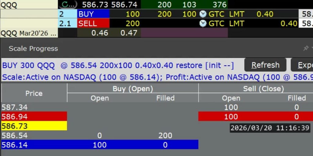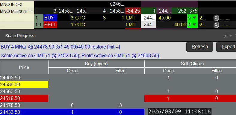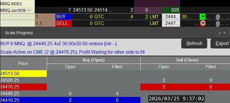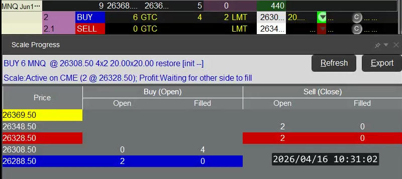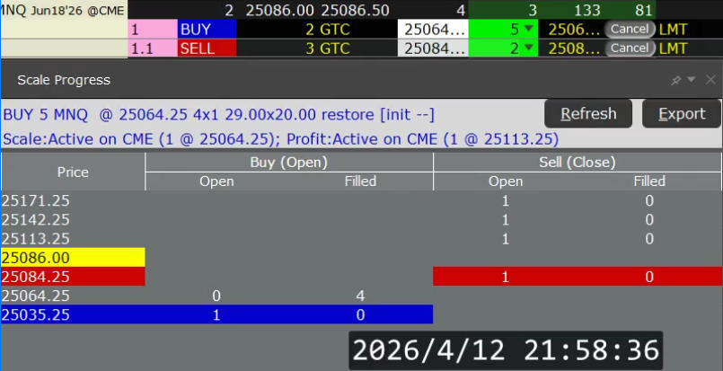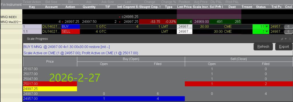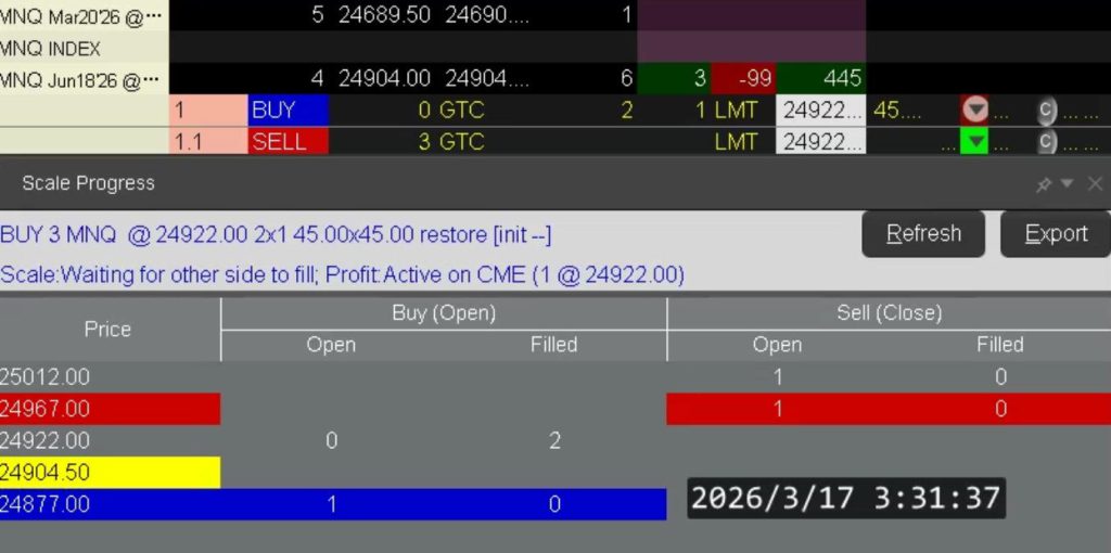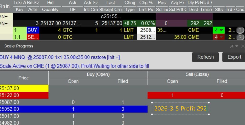 We use Interactive Brokers (IB) ScaleTrader to trade the e-Micro Nasdaq futures.