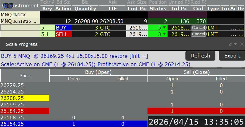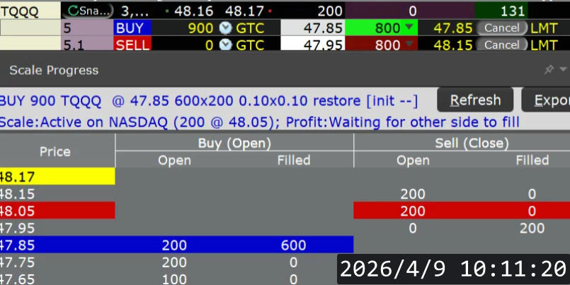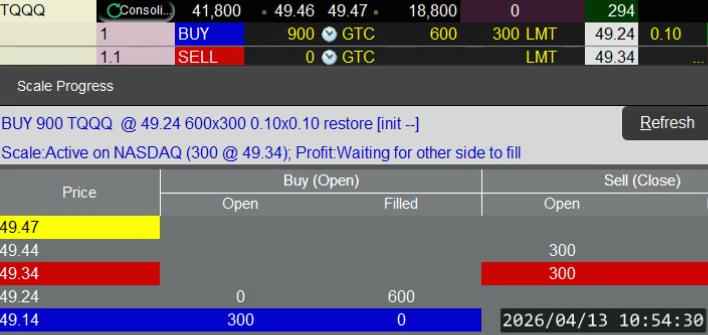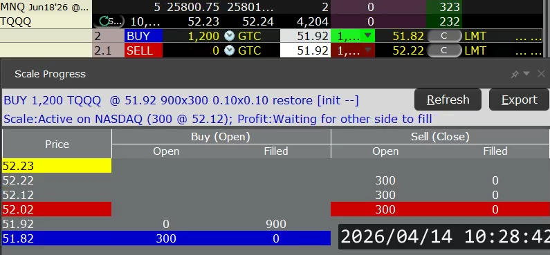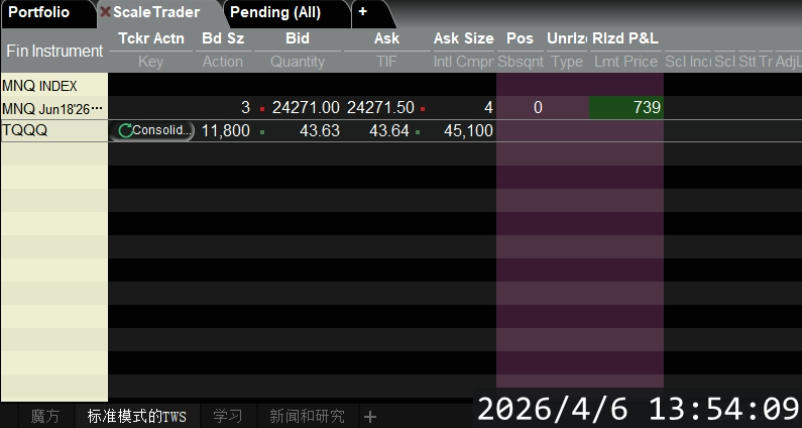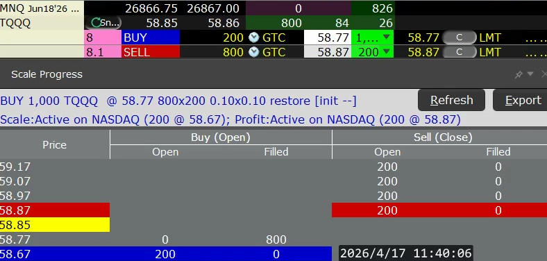2026-4-17 MNQ Profit $826, TQQQ Profit $110