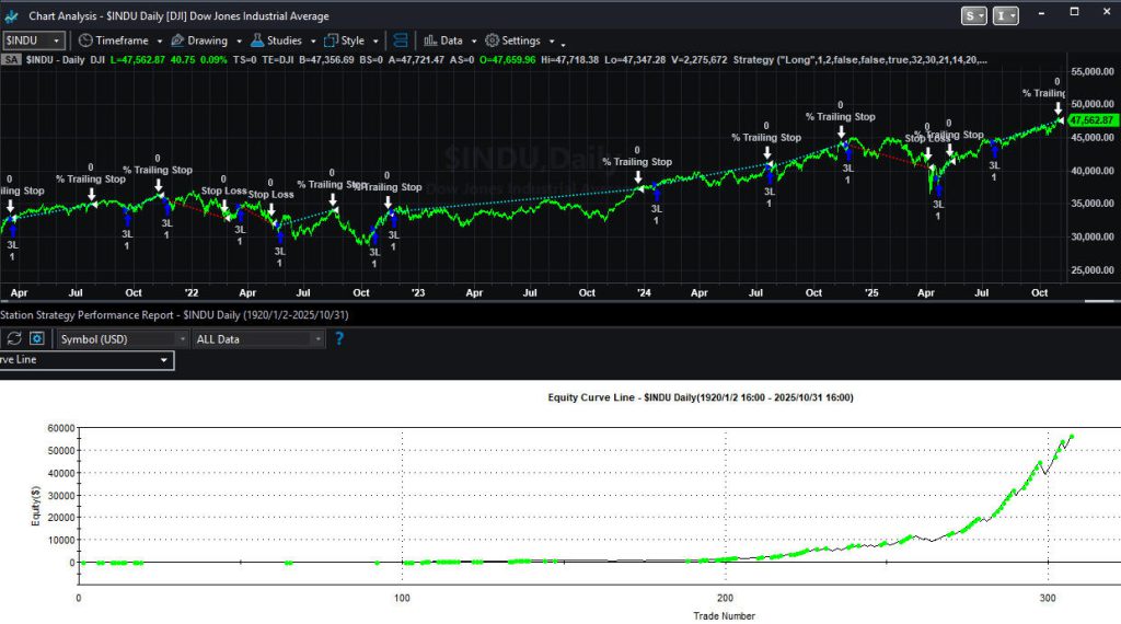 We tested this One-Trade-a-Month model on 125 years of historical data of Dow. Here are the results. Dow gained 40,000 points in the past 125 years, our model realized 56,517 points beating the market by 40%.