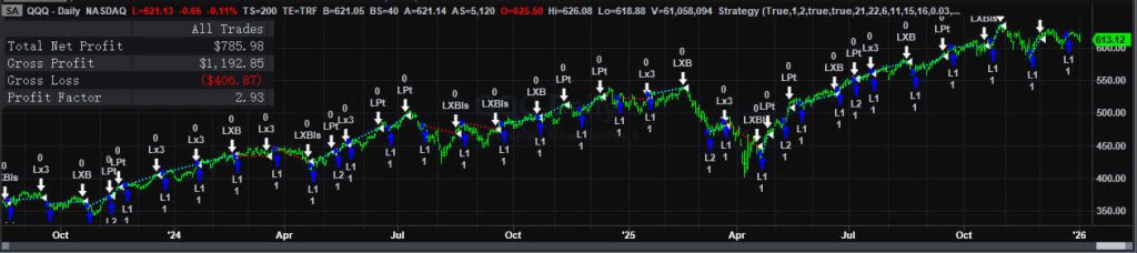 We have algorithms for QQQ trading, one trade a month and one trade a week, which are based on return variance analysis of QQQ.