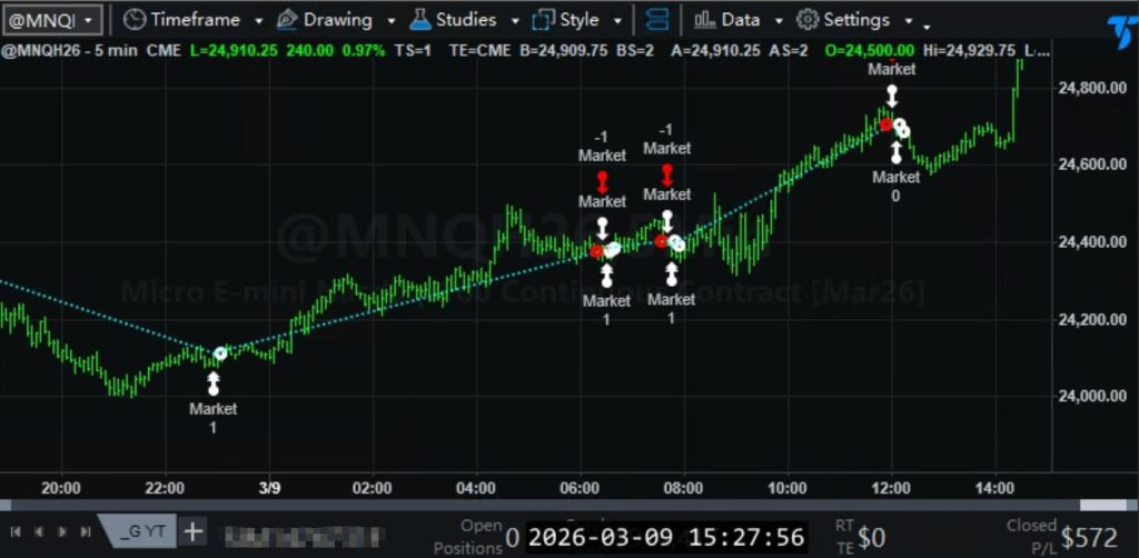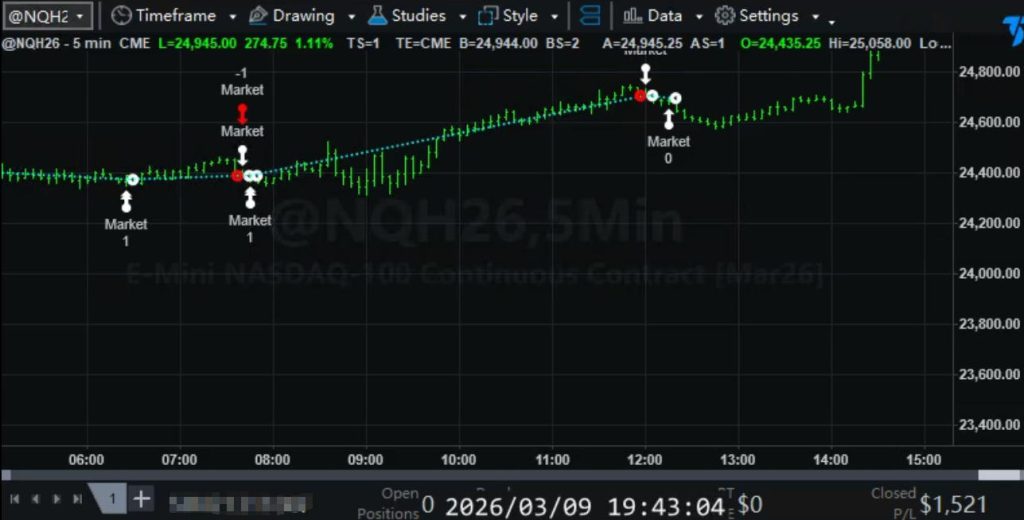 Mar 9, 2026 Monday, NQ Profit $1,521