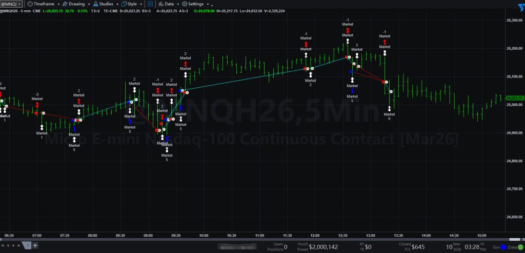 Mar 10, 2026 Tuesday, MNQ Profit $645