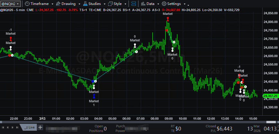 Mar 13, 2026 Friday, NQ Profit $6,443