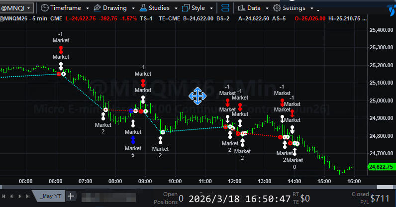 Mar 18, 2026 Wednesday, MNQ Profit $711