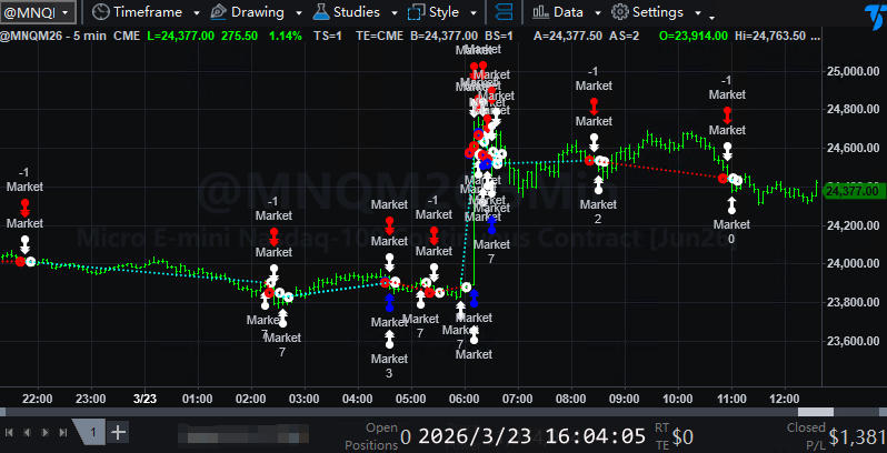 Mar 23, 2026 Monday, MNQ Profit $1,381