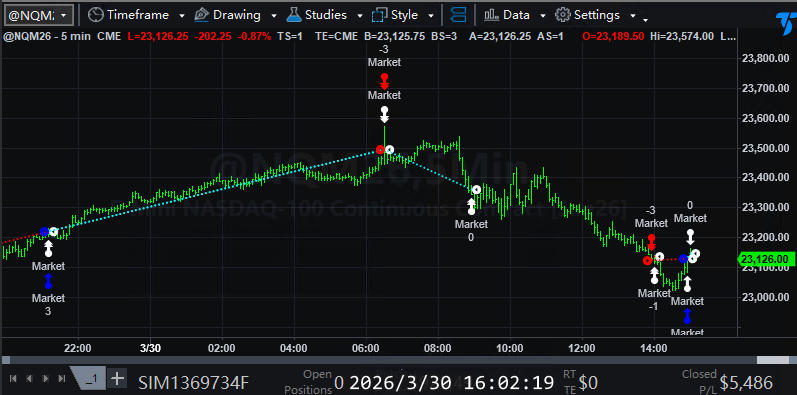 Mar 30, 2026 Monday, NQ Profit $5,486
