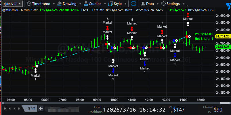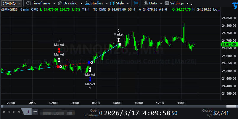 Mar 16, 2026 Monday, NQ Profit $2,741