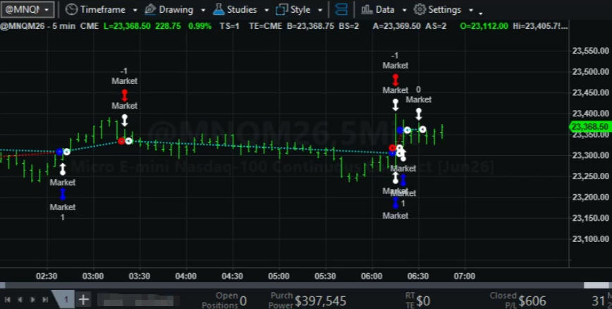 Mar 31, 2026 Tuesday, MNQ Profit $606