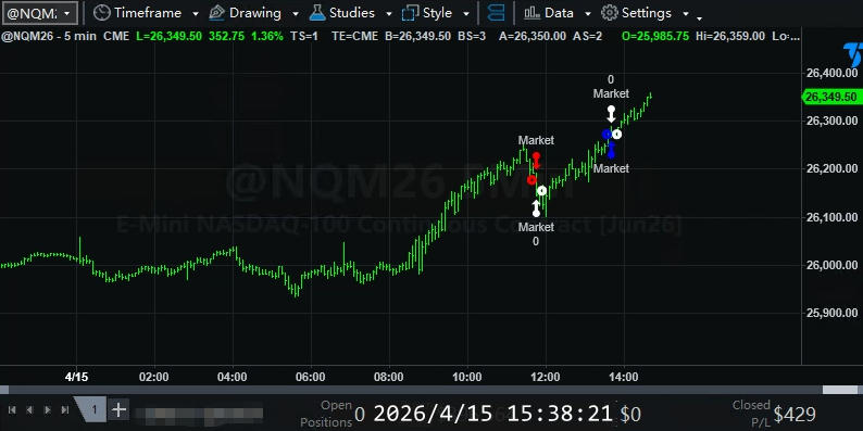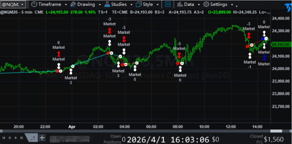 Apr 1, 2026 Wednesday, NQ Profit $1,560