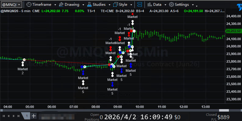 Apr 2, 2026 Thursday, MNQ Profit $889