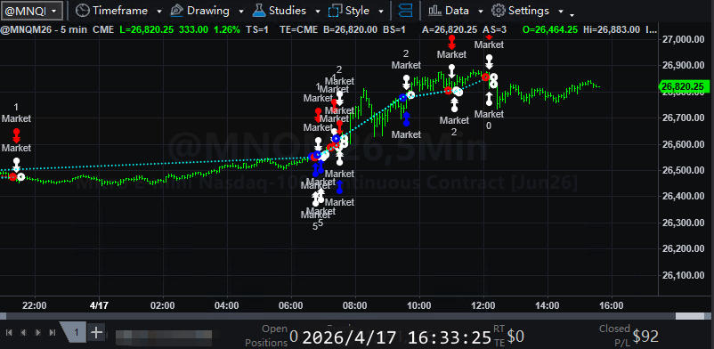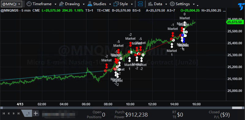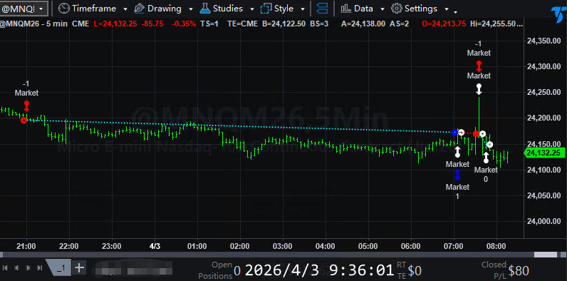 Apr 8, 2026 Wednesday, MNQ Profit $687
