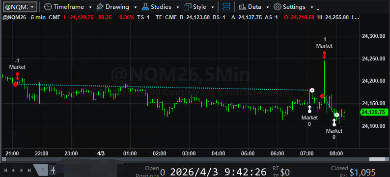 Apr 3, 2026 Friday, NQ Profit $1,095
