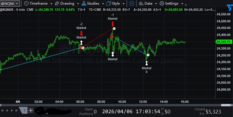 Apr 6, 2026 Monday, NQ Profit $5,336