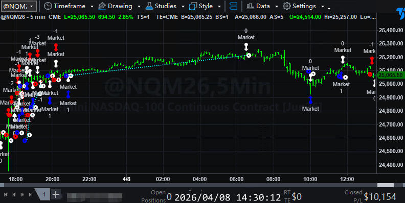 Apr 8, 2026 Wednesday, NQ Profit $10,154